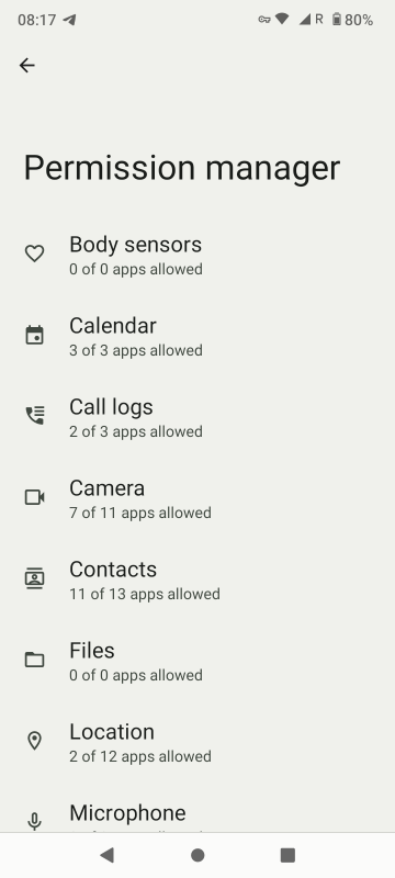 Once you’re in the Permissions Manager, you’ll see a list of your apps along with the specific permissions each one has, as shown in the image below. Adjust the settings to allow certain permissions only when the app is in use, rather than granting continuous access.