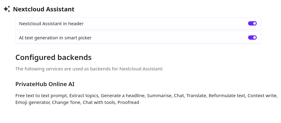 The AI features work directly inside your Nextcloud, giving you one-click access to the features from anywhere.